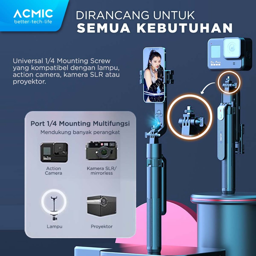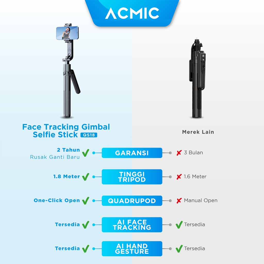 ACMIC QS18 Face Tracking Gimbal Tongsis Tripod Quadpod 4 Kaki Bluetooth Selfie Stick 180cm