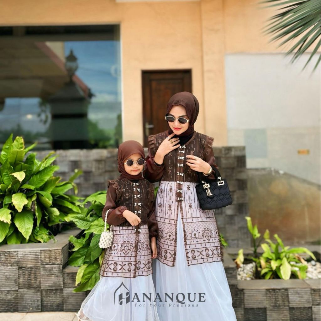 Hananque Khansa er Tunik Kondangan Couple Ibu dan Anak Usia 1-13 Tahun Brokat Tulle Kondangan