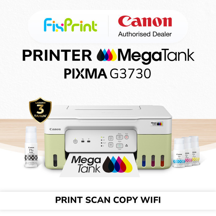 FixPrint Printer Wifi Canon G3730 Hijau Green | Ink Tank All In One Print Scan Copy