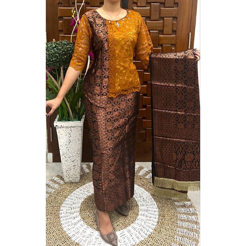 Setelan songket terbaru kombinasi kebaya brokat semiprancis dan terkini lengkap ukuran jumbo