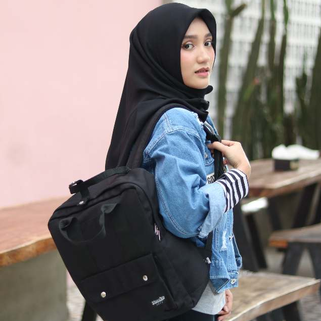 Himeku NAMI BLACK Backpack - Tas Sekolah Kerja Medium - Tas Laptop - Ransel Pria Wanita Kanvas