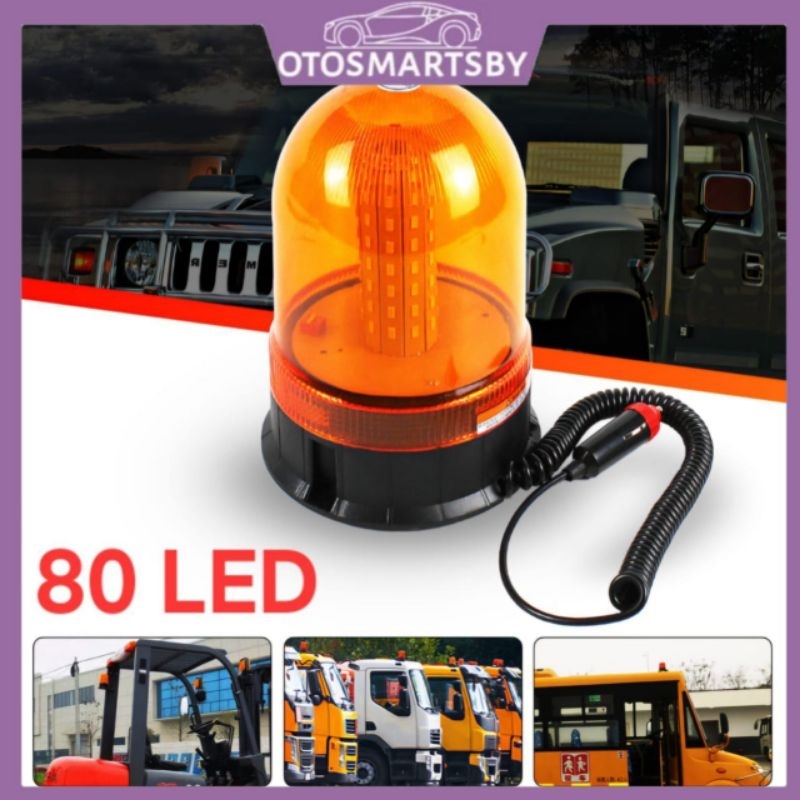 Lampu Rotary LED Beacon Mini Forkift Kedip Blitz Emercency DC 12V-24V 80LED