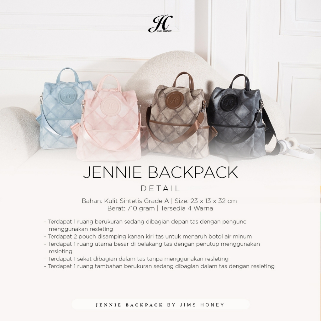 JIMS HONEY Jennie Backpack Tas Ransel Sekaligus Selempang 2 in 1Tas Anti Maling Waterproof Korea