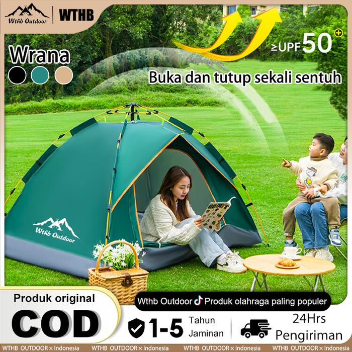 【WTHB】TENDA CAMPING OTOMATIS TENDA CAMPING LIPAT PORTABLE 200X200CM DOUBLE LAYER HUJAN PARASUT KEMAH PORTABLE TENDA GUN