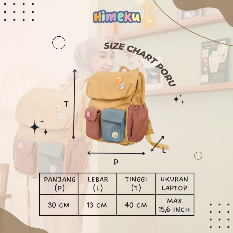 Himeku PORU Backpack - Tas Besar - Tas Sekolah Kuliah Kerja - Ransel Kanvas Wanita