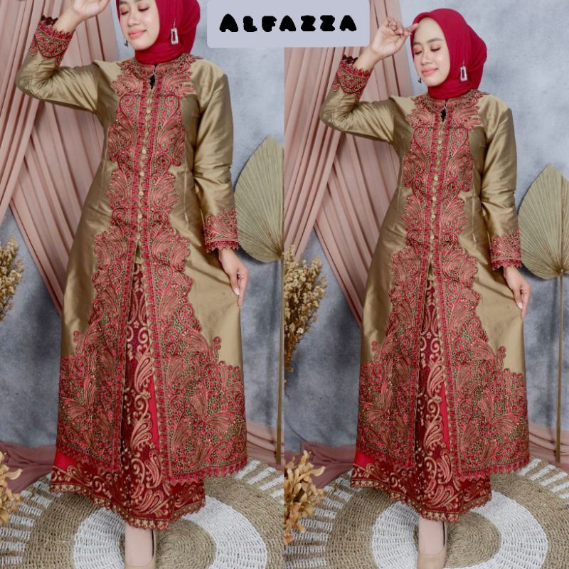 Set Jom-Jom / Stelan Rok Sateen Bridal Combinasi Bordir,Kebaya Setrok Bordir / Kebeya Modern / Baju Pesta Elegant