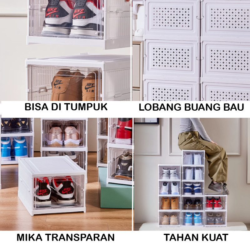 HANEDA RAK SEPATU LIPAT LEMARI SEPATU KOTAK SEPATU SUSUN BOX DISPLAY MAINA TRANSPARAN BEBAS DEBU