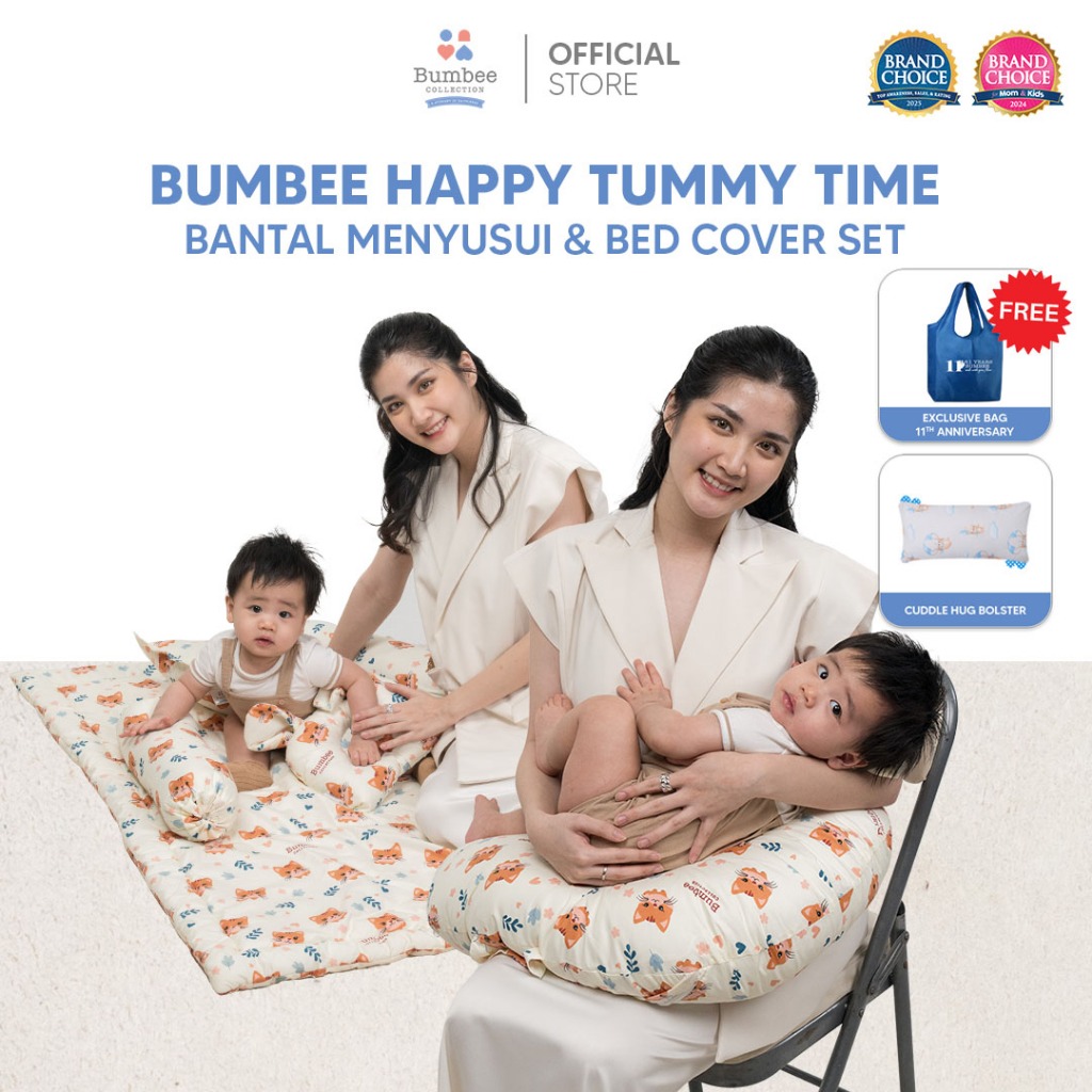 BUY 2 GET 4 Bumbee Happy Tummy Time - Bedcover Set & Bantal Menyusui FREE Cuddle Hug baby + Tas Belanja