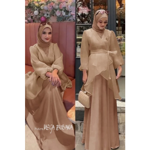 Lucsya Dress Set - Gamis Satin Velvet Organza Inner Outer Kimono Pesta Bridesmaid