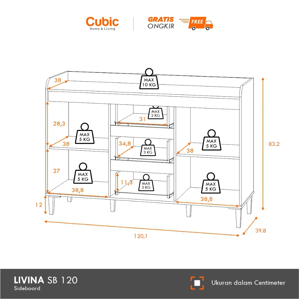 CUBIC SIDEBOARD MINIMALIS / BUFET SERBAGUNA / LEMARI KABINET / LIVINA SB 120
