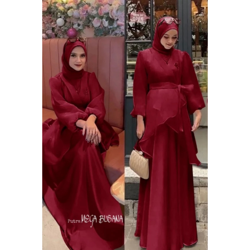Lucsya Dress Muslim Set 3in1 - Gamis Satin Velvet Organza Pesta