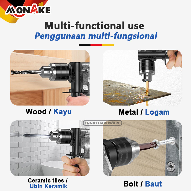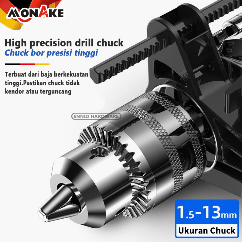 MONAKE German Tool Mesin Bor 13mm Impact Drill Tangan Listrik Electric Drill Koper Set Besi Bor Beton Kayu Tembok Putara