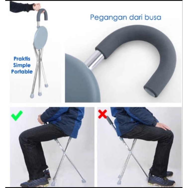 Tongkat Duduk / Alat Bantu Jalan Orang Tua / Tongkat Kursi / Kursi Lipat