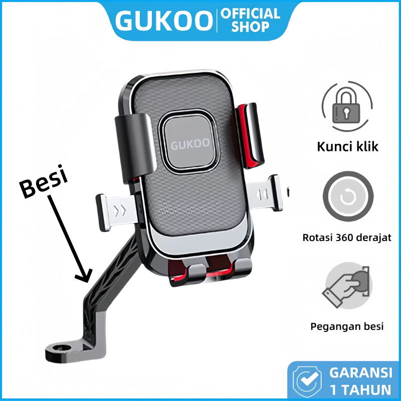 GUKOO Holder Motor Universal - Bahan Besi Kuat, 360° Rotasi, Tipe untuk Spion Depan & Belakang - Anti Goyang, Stabil di Jalan