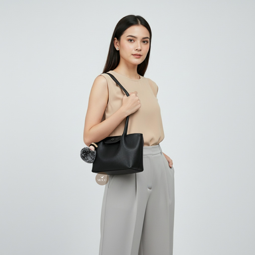 MOCO OFFICIAL - Aria Bag Fashion Tas Shoulder Bag Wanita Korean Style Tote Simple Elegant dengan Bag Charm 6638