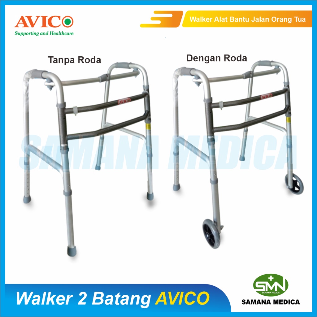 Walker Lansia 2 Batang Merk AVICO AV-8120 Alat Bantu Jalan Walker Tanpa Roda / Dengan Roda Lebih Kuat Kokoh Double Bar
