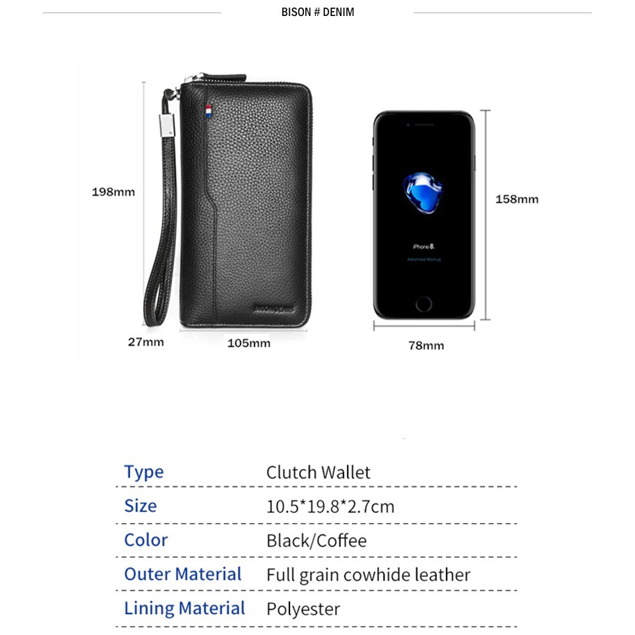 Bison Denim Dompet Panjang Kartu Clutch Pria Kulit Sapi Asli W8226