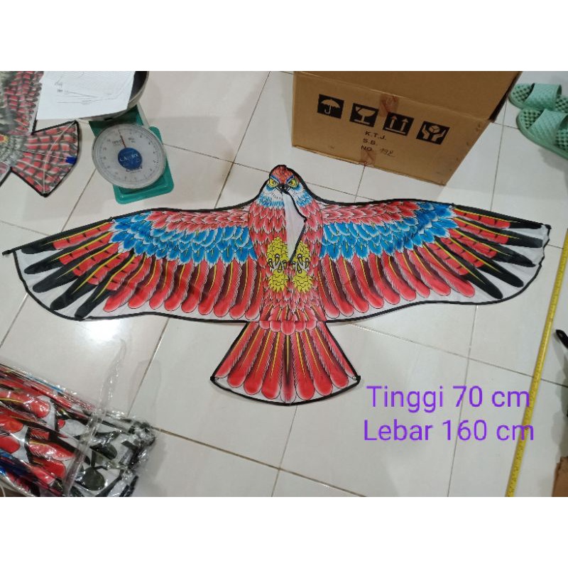 Layangan motif Elang, Burung hantu, Ikan, Benang Kenur, Rollan benang, Gulungan Benang