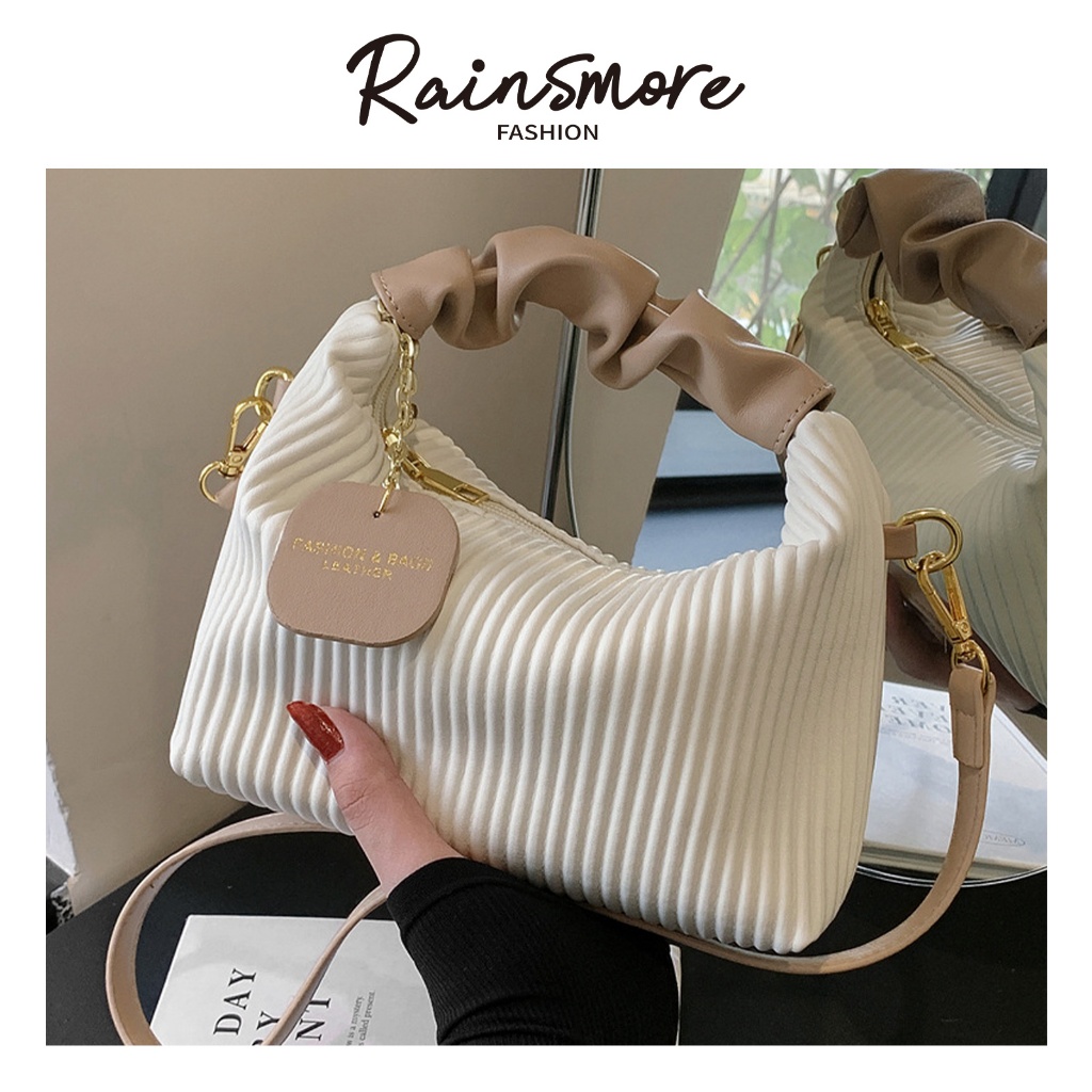 Tas Wanita Modis & Unik Motif Garis Vertikal – RAINSMORE Handbag Bisa Selempang, Dijinjing & Bahu