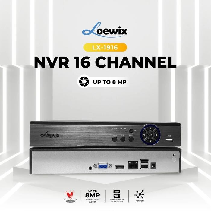 LOEWIX NVR CCTV SUPPORT 8MP – PEREKAM VIDEO RECORDER MONITOR JARINGAN 16 CHANNEL XMEYE HUMAN DETECTION - LX-1916