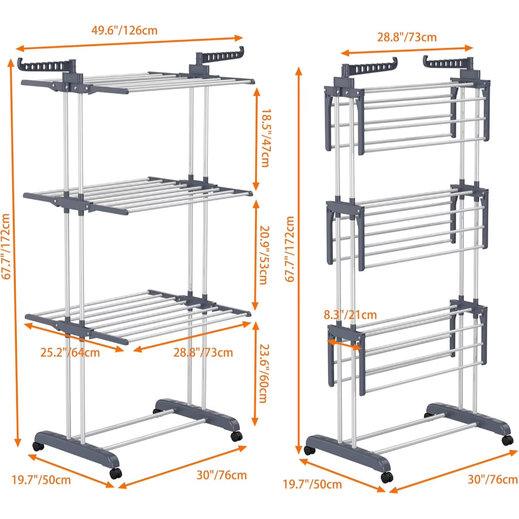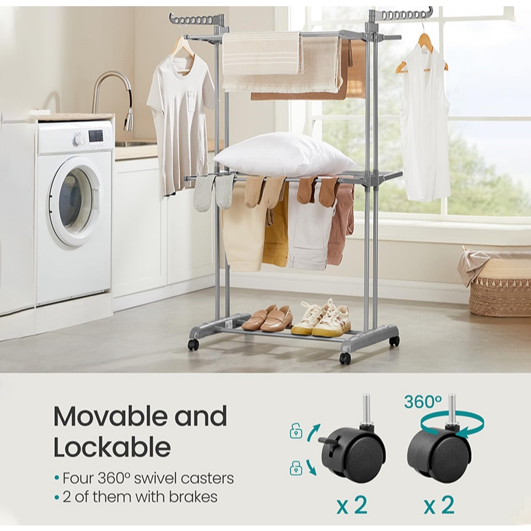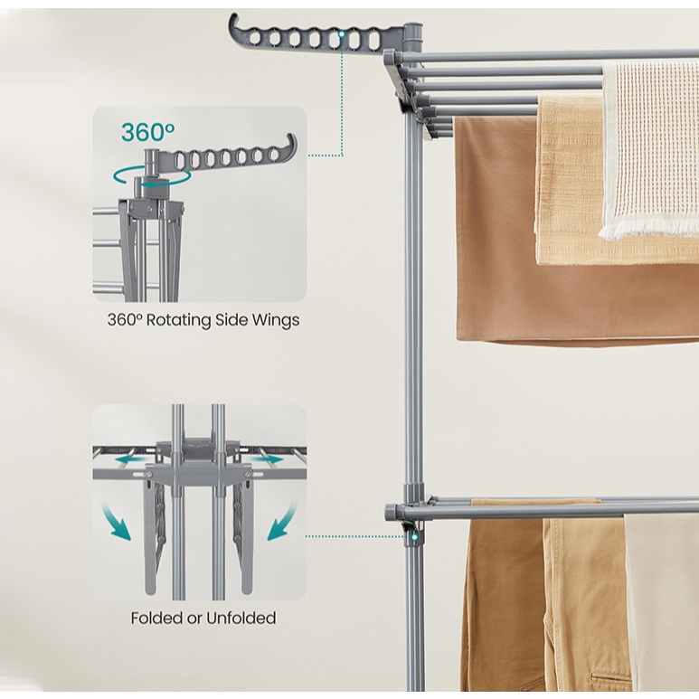 T-SEA RAK JEMURAN LIPAT BAJU HANDUK SEPATU SLOT 4SUSUN DGN RODA GANTUNGAN PAKAIAN
