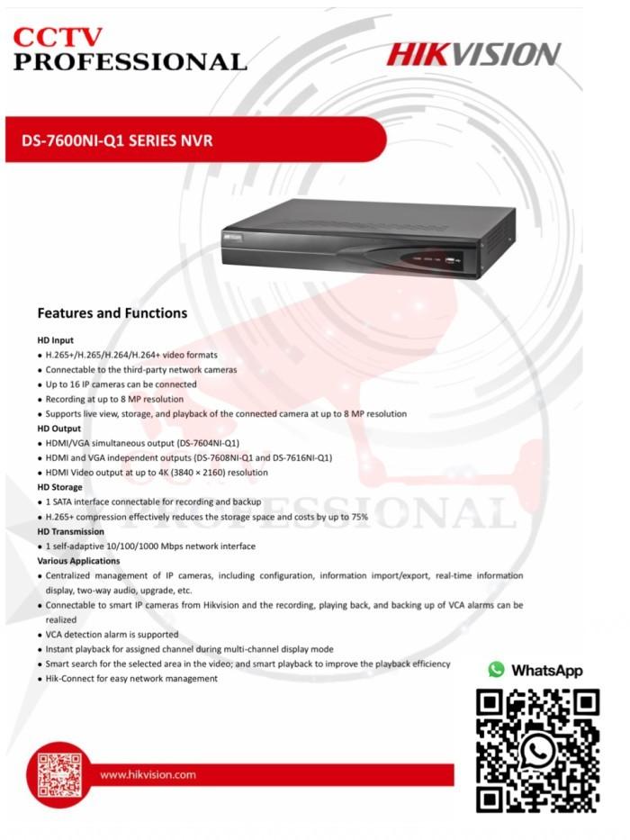 NVR HIKVISION DS-7616NI-Q1 16 CHANNEL H265+