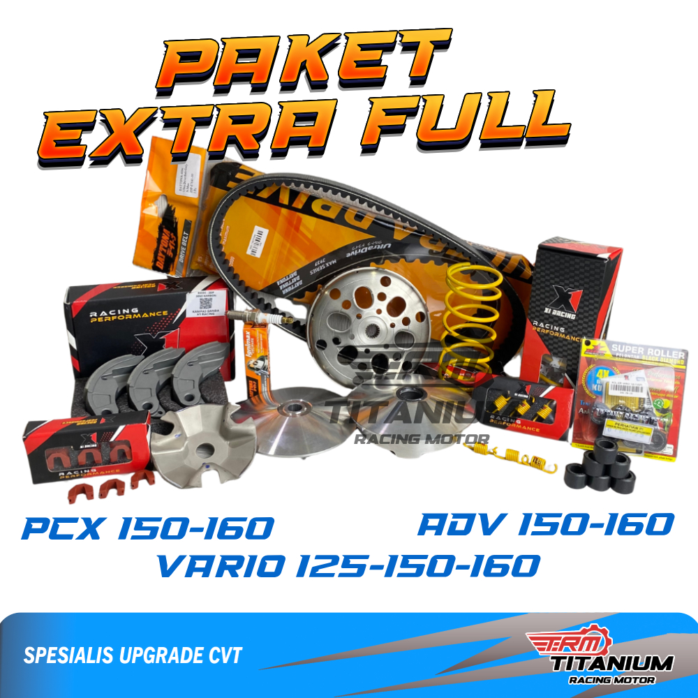 PAKET EXTRA FULL UPGRADE KIRIAN CVT vario pcx adv 125 150 160 old led bolam thailand vietnam indonesia lokal racing - Pulley Set TITANIUM RACING MOTOR