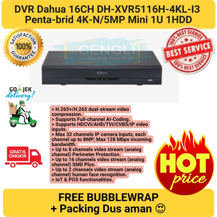 DVR DAHUA 16CH DH-XVR5116H-4KL-I3 PENTA-BRID 4K-N/5MP MINI 1U 1HDD