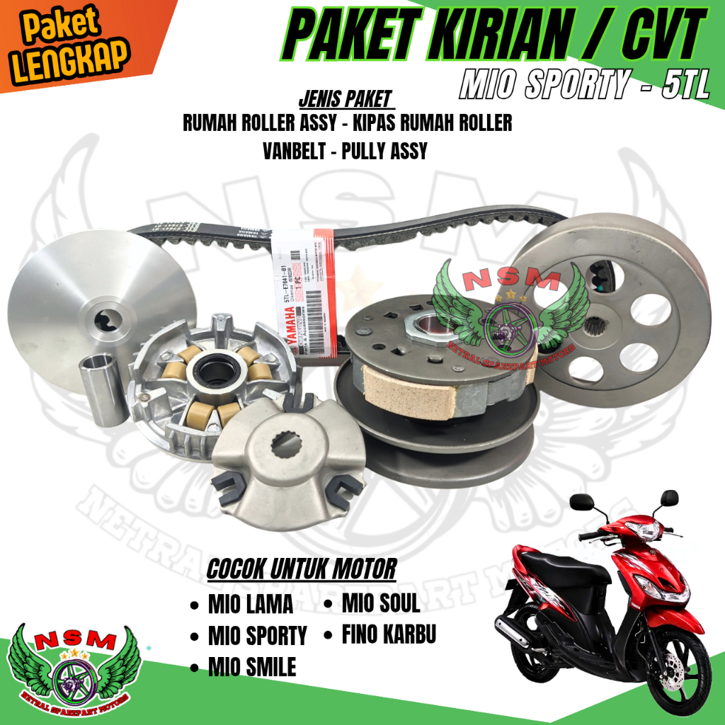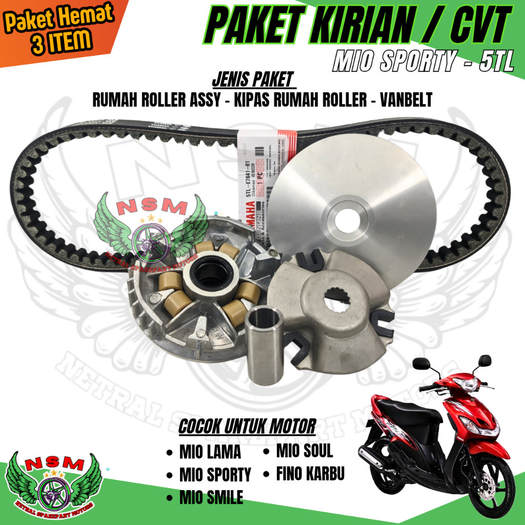 PAKET KIRIAN LENGKAP 4 JENIS PULLY A55Y MIO SPORTY + RUMAH ROLLER A55Y + KIPAS + VANBELT MIO KARBU / MIO SMILE / MIO SOUL / FINO LAMA / NOUVO
