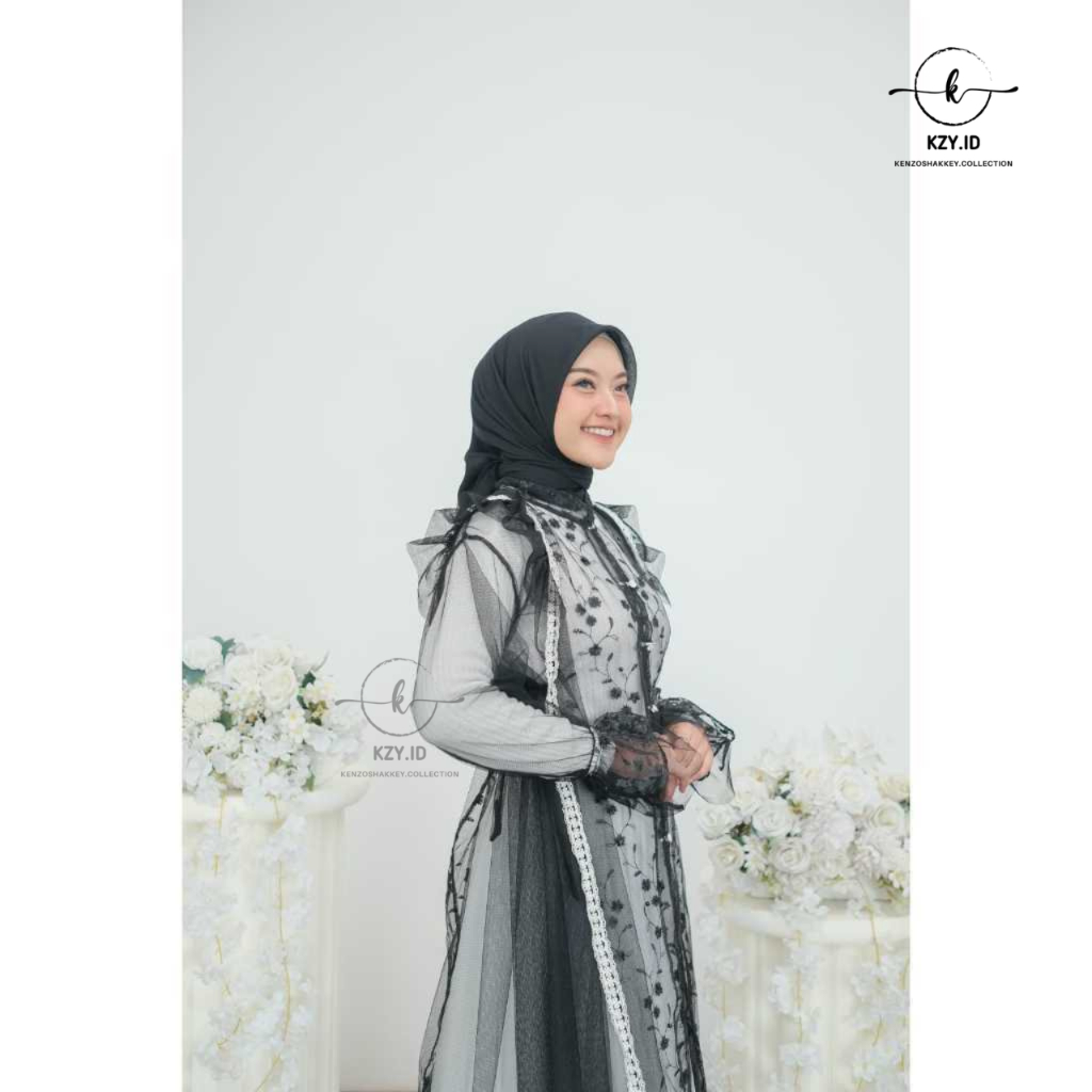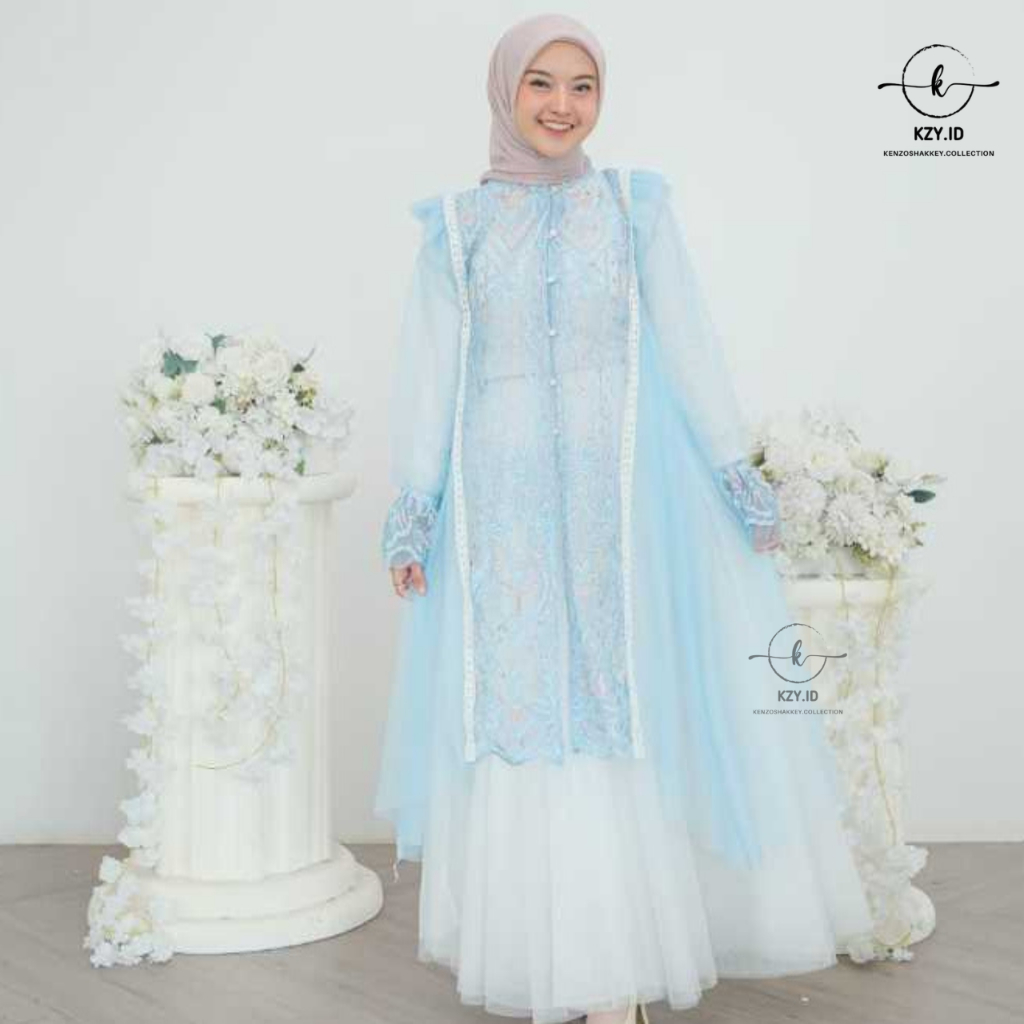 [KZY.ID] Outer Wanita Brukat Elzio Brukat Tille Bordir dikombinasi Tille Polos Cardigan Kekinian.