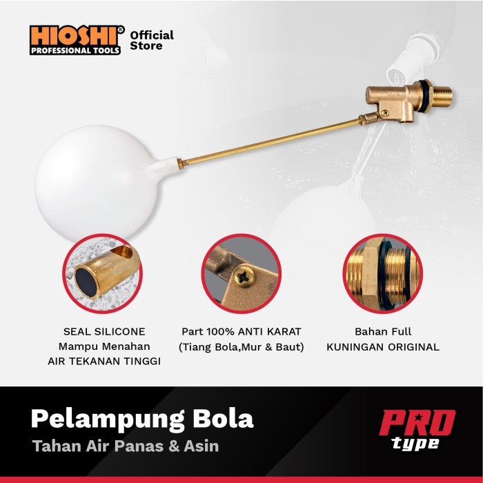 HIOSHI /Pelampung Air/Bola/Tandon/Toren/Tangki/Bak/ Kuningan / 1/2, 3/4, 1 Inch/Floating valve - PRO
