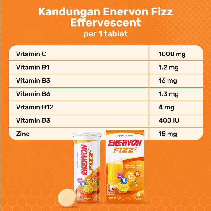 BARU !!! Enervon Fizz Tablet Effervescent (1 Tube x 8 Tablet) - Suplemen Kesehatan dengan Vitamin C dan B Complex, D3 pl