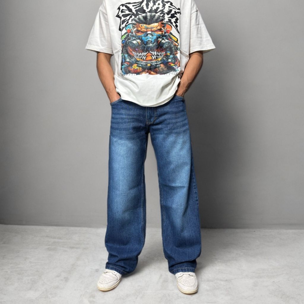 [Star]celana jeans pria black wisker loose fit reguler gombrong standard denim washed wide leg skena terlaris