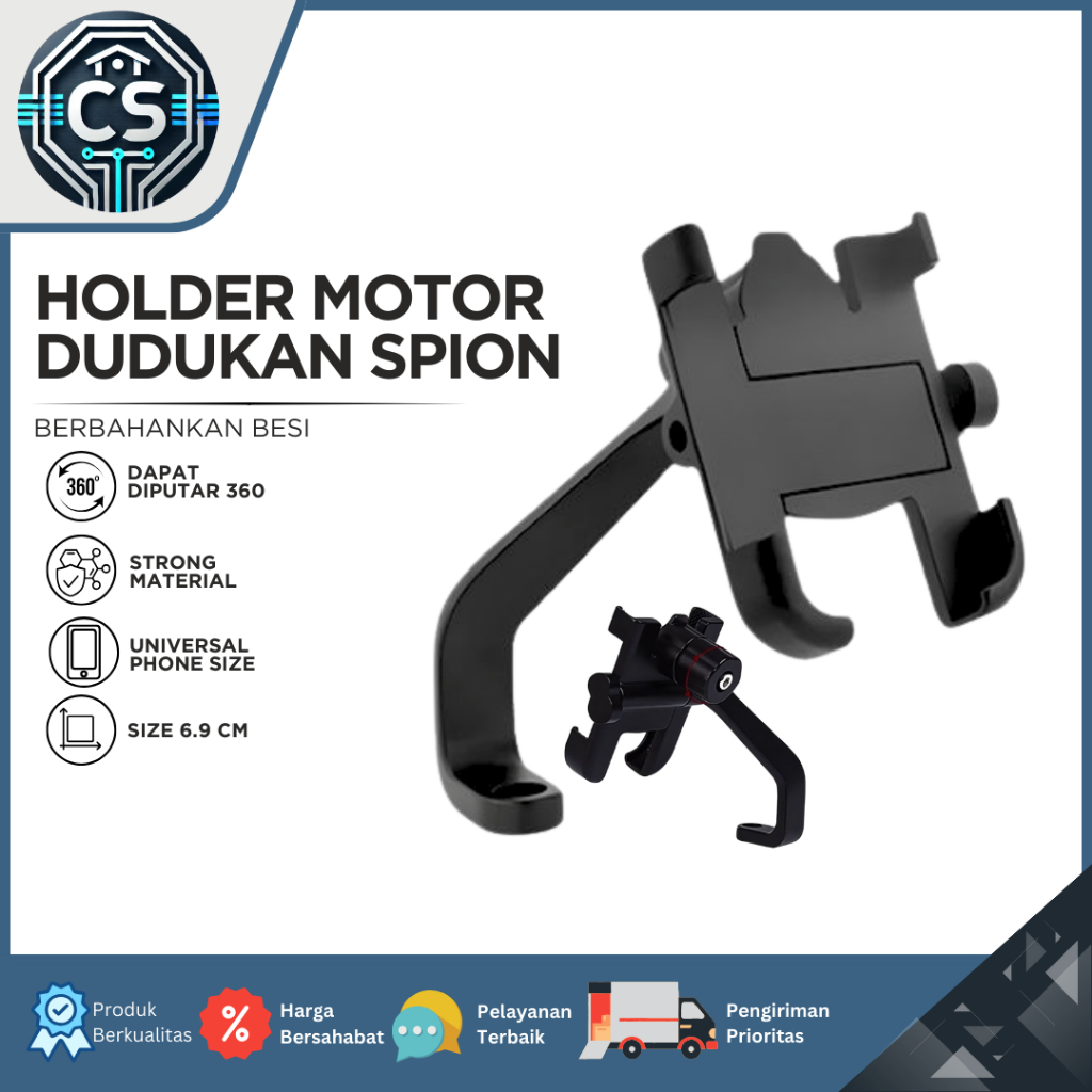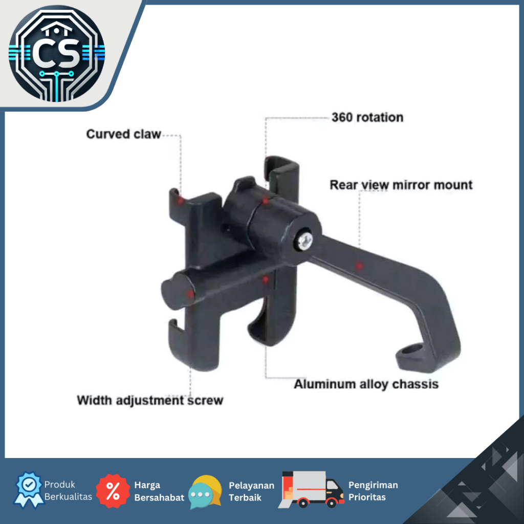 Holder HP Motor Besi Full Metal C2 Spion Universal – Kuat & Berkualitas