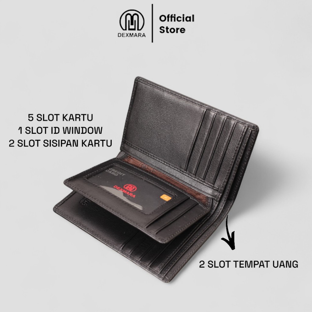 DEXMARA Dompet Kulit Pria Tanggung 3/4 Lipat Dua Bahan Kulit Asli Banyak Slot Kartu Free Box KNH 05
