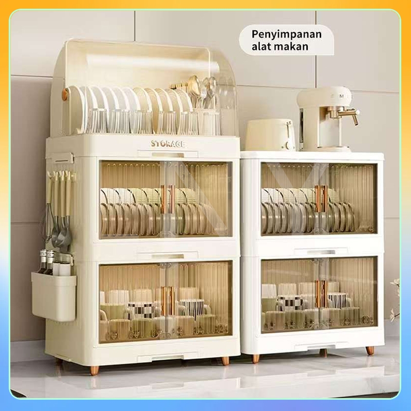 Lemari Plastik Dapur Rak Penyimpanan Piring Multi-Lapis Kapasitas Besar Rak Pemban Dapur