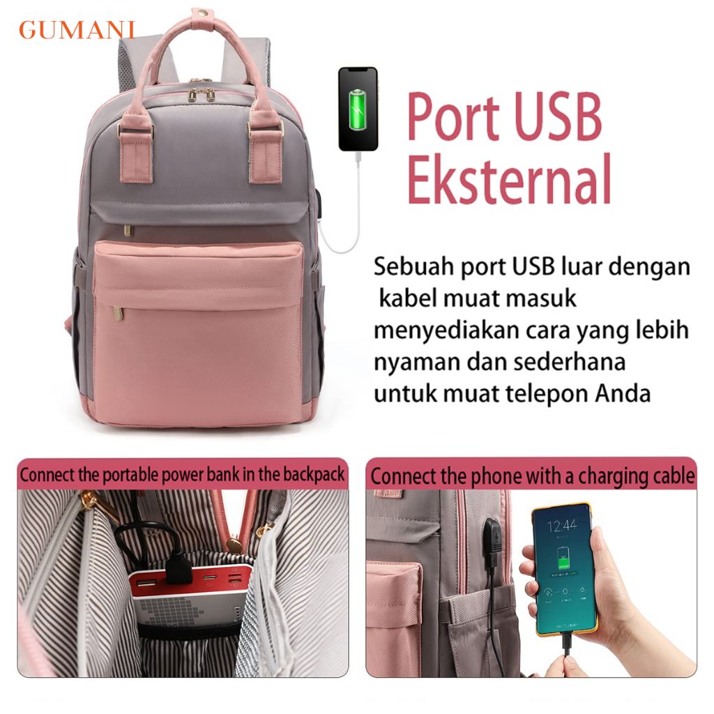 GUMANI Tas Ransel Traveling Wanita Multi-Fungsi Waterproof Laptop Backpack 16 Inch