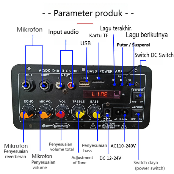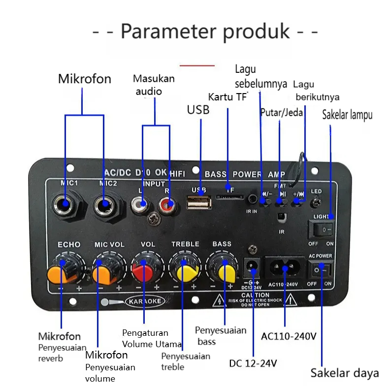Barang Dagangan Dalam Stok1000W Amplifier Board Audio 12V/24V/220V Bluetooth USB Radio TF DIY Speaker Woofer Ampli Full