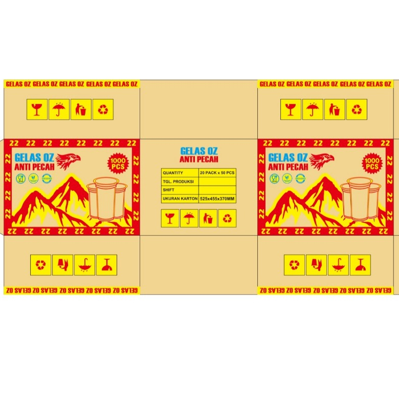 KARTON GELAS PLASTIK 22 OZ DATAR ISI 1000 PCS / 50 PCS X 20 PACK , GELAS TEH SOLO