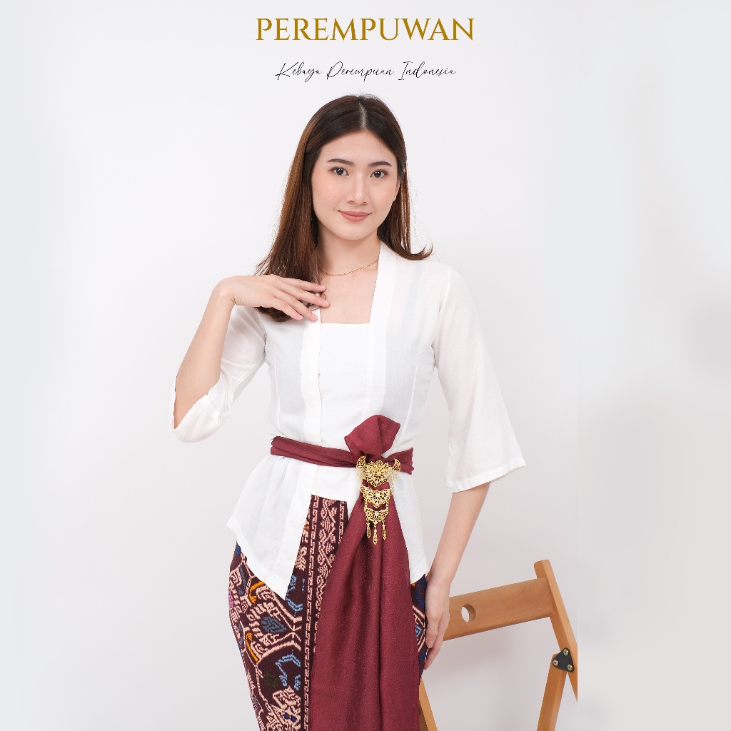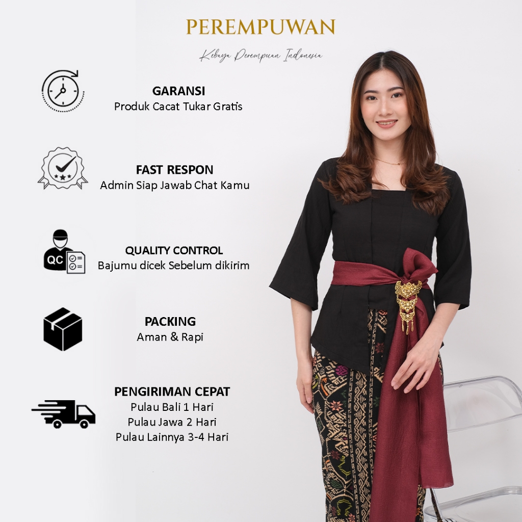 SAMAYA Atasan Kebaya Bali Kutu Baru Katun Linen Lengan Lonceng - Hitam/Putih