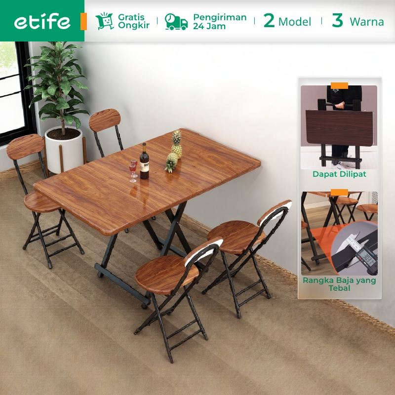 Meja Lipat Multifungsi E-TIFE – Set Meja Makan & Kursi Lipat Portable, Ringan & Kuat