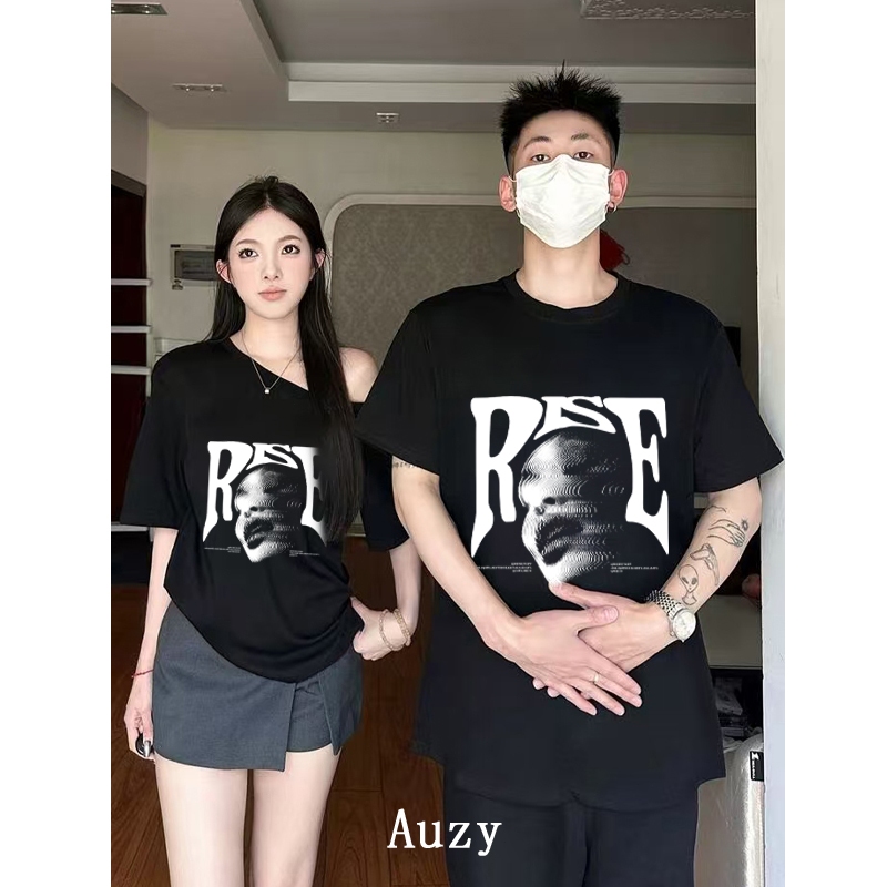 AUZY RISE PUNK Pasangan Atasan tanpa bahu kaos pria wanita atasan Lengan Pendek T-shirt skena baju oversize t shirt