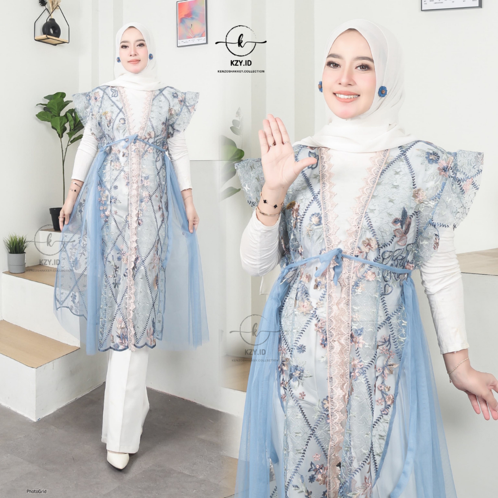 [KZY.ID] er Hanum Dress Brukat Kondangan Wanita Kekinian Lengan Pendek Cardigan.