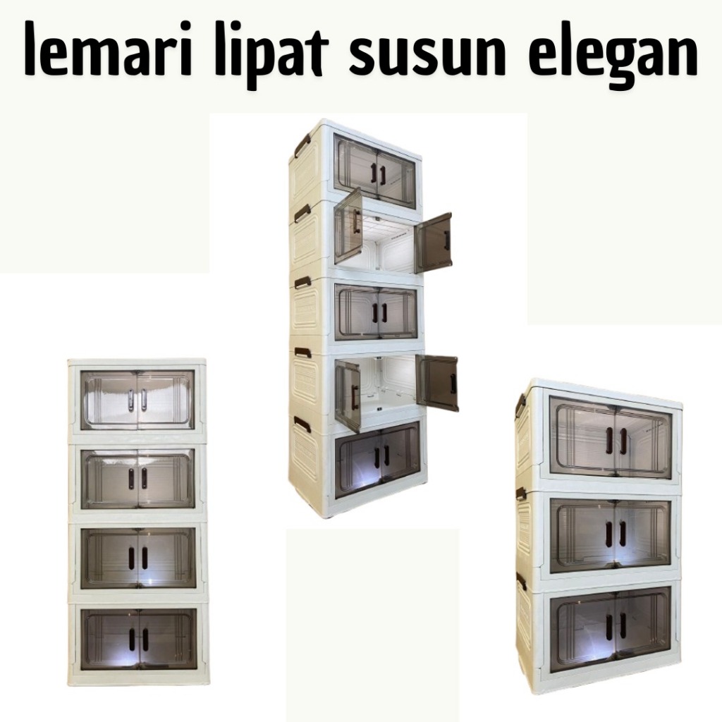 Lemari Lipat Plastik 3, 4 Dan 5 Susun Laci Penyimpanan Set Roda 180 Derajat Rak Kabinet Mini Serbaguna Rak Dapur Storage