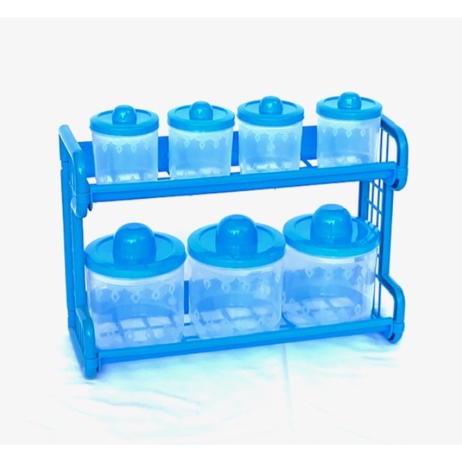 Rak Bumbu Dapur Set isi 7 Tempat Bumbu 2 Susun