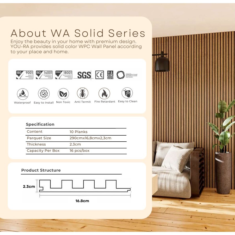 WallPanel Warna Solid WPC 2.9 Meter Pink Biru Merah YOURA