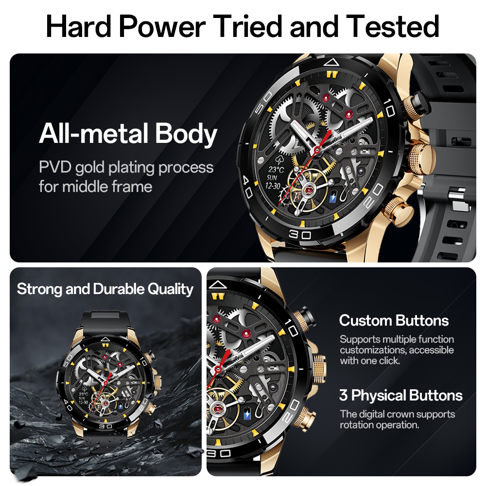 【New】Aolon Luxor Jam Tangan Smartwatch Tombol Kustom 48mm Layar IPS Detak Jantung 24H Telepon Bluetooth Olahraga 100+ Logam Smart Watch Pria