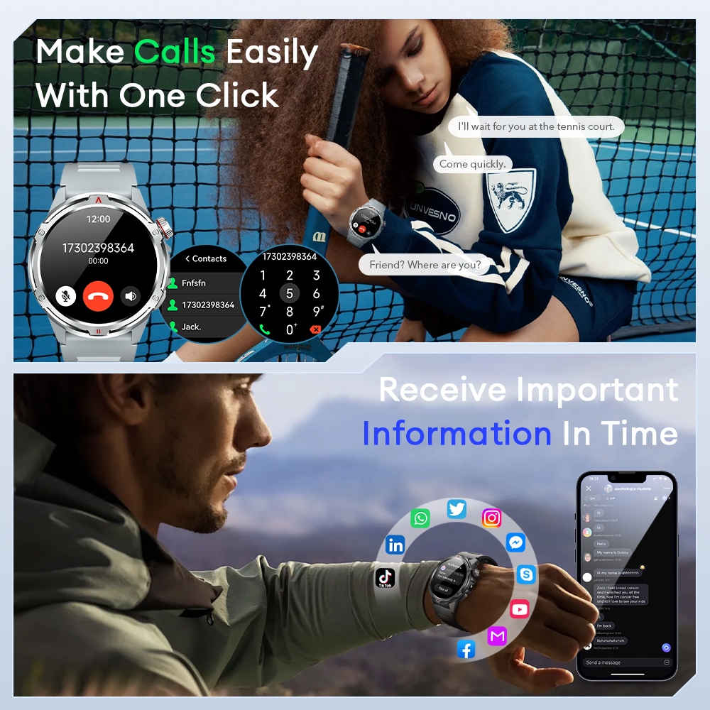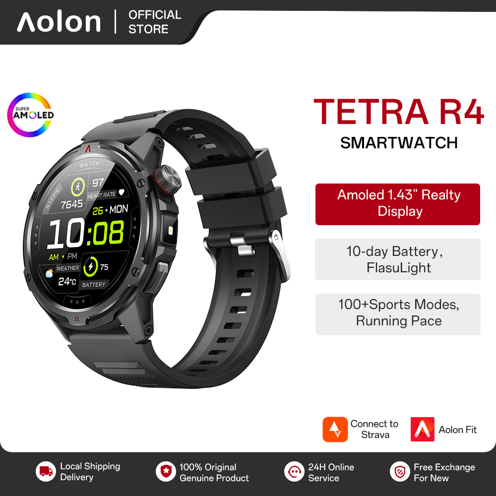 Aolon Tetra R4 Amoled Smartwatch Original AOD Running Pace Strava Waterproof 1ATM Compass 1.46'' Bulat 466466 Display Cover Lock Heart Rate&Blood Pria Wanita