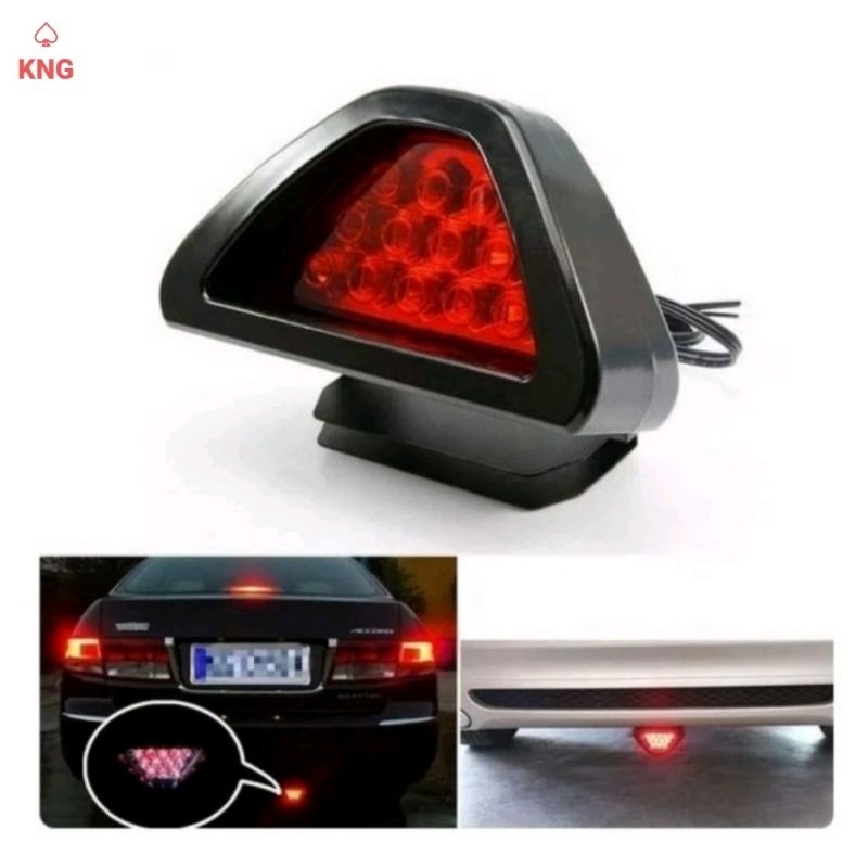 Lampu Stop Rem F1 Led Motor Mobil Segitiga Bemper Belakang Universal - Brake Lamp Strobo Kedip