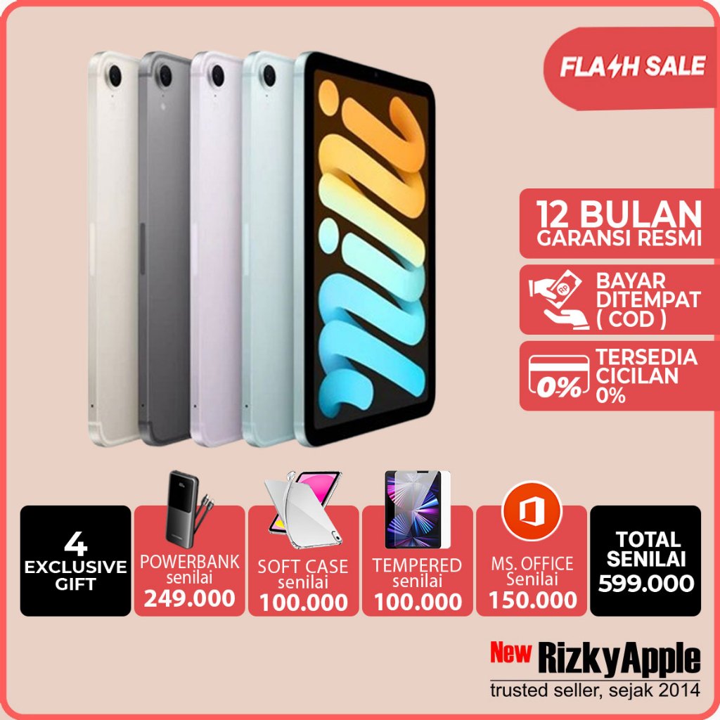 Apple iPad Mini 7 8.3" inch Retina Chip A17 Pro 128GB 256GB 512GB Grey Purple Blue Starlight Wifi Only Garansi Resmi Apple